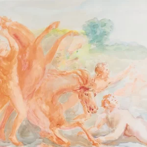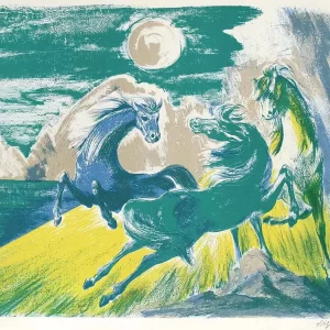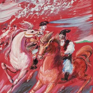 Aligi Sassu was born in Milan in 1912. Son of one of the founders of the socialist party of Sassari, he moved with his family to Sardinia where for three years he lived in contact with the horses and the strong colors of the Mediterranean. Having returned to Milan, he became passionate about reading books Futurists: he is the father, friend of Carlo Carrà, to instill this passion in him. Forced by economic difficulties to abandon school (which ended with evening courses), he began working in a lithographic workshop and with a wall decorator. Sign up forBrera Academy where he knows Lucio Fontana, but he had to abandon it for economic reasons and move to the Accademia Libera which provided him with easels and models in exchange for a painting a month. The academy was short-lived and Sassu continued his activity in a rented studio together with Manzu. They were born in this period Cyclists they Red men. On the occasion of Mussolini's defeat in the battle of Guadalajara, he wrote with De Grada a poster praising the insurrection. He comes arrested and locked up in San Vittore where he cannot devote himself to painting. Later transferred near Cuneo, he created over 400 drawings including portraits of prisoners and mythological works. Thanks to his father, he was granted a royal pardon in 1938, remaining under special surveillance until 1941 when he was able to set up a solo show in the Bottega di Current. Meet many artists, including Picasso. He moves in Spain, where the Bullfighting and he knows the acrylic technique which allows him to create more vivid and bright colours. In Italy he created sets and costumes for the reopening of the Royal Theatre of Turin and a room is dedicated to him in the Gallery of Modern Art of the Vatican. For his 87th birthday an anthology was inaugurated in Palazzo Strozzi in Florence, but he died the following year.
