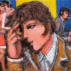 Together with other young artists he founded the current in Milan New Realism and organizes exhibitions in nightclubs so much so that it deserves the definition of painter of the night.