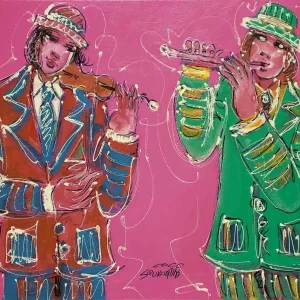 The pains he faces in his life are transformed into a state of grace. His works are characterized by the joy of color, hugs, music and dreams.