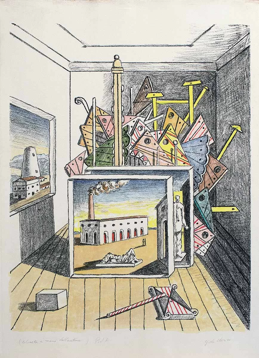 Profondamente ispirato dal suo legame biografico alla Classicità greca, Giorgio de Chirico sviluppò una concezione pittorica al di là della realtà visibile. Il termine metafisico (ripreso dall’omonima filosofia greca) esprime a pieno questa volontà di non fermarsi al mondo concreto, ma di puntare oltre: verso ciò che è enigmatico e inquietante.