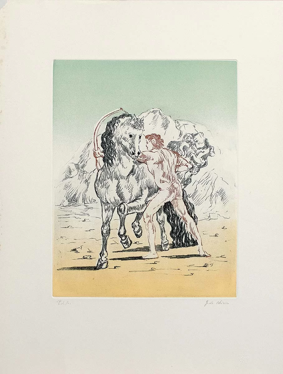 Giorgio de Chirico nasce nel 1888 a Volos in Grecia. Giovanissimo segue un corso di disegno alla Scuola politecnica di Atene, poi studia all’Accademia di Belle Arti di Monaco. Dal 1910, le letture di Nietzsche lo spingono a produrre i primi autoritratti e paesaggi metafisici. La prima personale è del 1919. Gli artisti surrealisti sono molto sensibili alla sua pittura metafisica che prefigura quella del loro movimento.