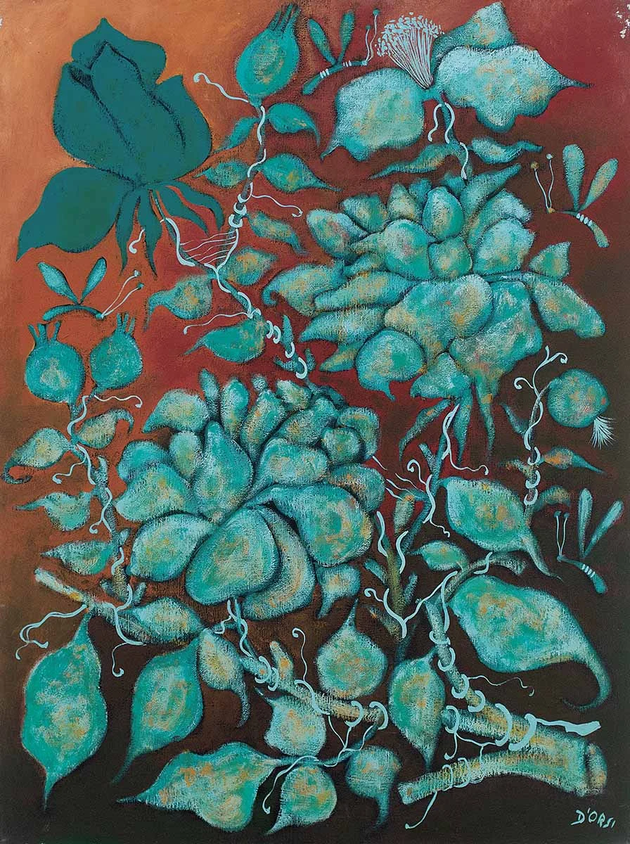 Poliedrico ed estroverso, il pittore varia nella scelta dei soggetti. Le figure che abitano i suoi quadri sembrano manichini, riportando così alla memoria l’insegnamento di De Chirico rivisitato dall’estro dell’artista. I paesaggi si suddividono in ordinati moduli geometrici, appartenenti a un mondo ideale, liberi dalla presenza umana, mentre gli alberi, anch’essi protagonisti di alcune opere di Dorsi, sono costruiti seguendo un astratto impianto segnico, capace di suscitare profonde vibrazioni nello spirito.