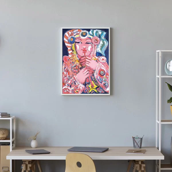 I dolori che affronta nella sua vita vengono trasformati in uno stato di grazia. Le sue opere sono caratterizzate dalla gioia del colore, abbracci, musica e sogno.