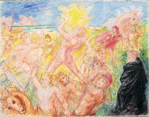 In Italia realizza scene e costumi per la riapertura del Teatro Regio di Torino e gli viene dedicata una sala nella Galleria dell’Arte moderna del Vaticano. Per il suo 87mo compleanno si inaugura una antologica in Palazzo Strozzi a Firenze, ma muore l’anno dopo.