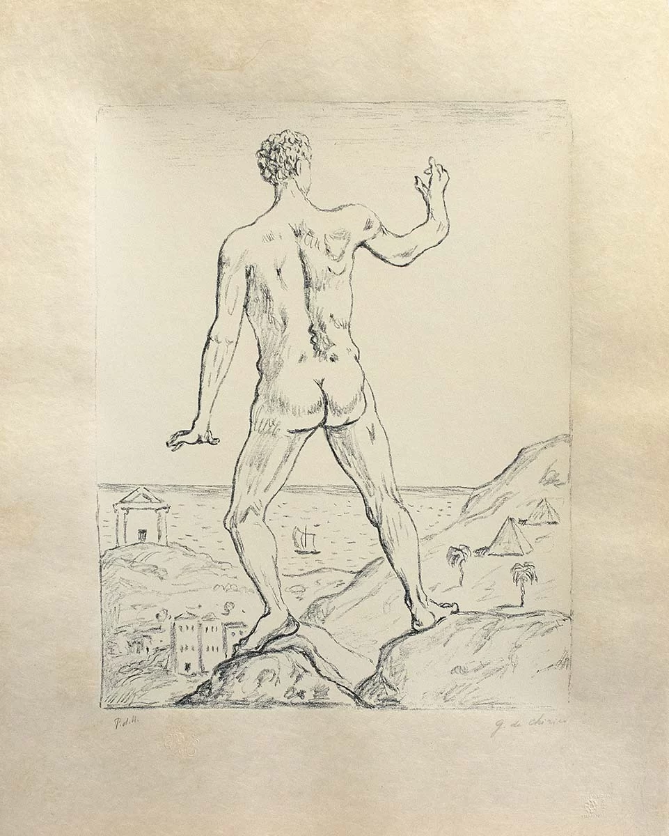 Giorgio de Chirico nasce nel 1888 a Volos in Grecia. Giovanissimo segue un corso di disegno alla Scuola politecnica di Atene, poi studia all’Accademia di Belle Arti di Monaco. Dal 1910, le letture di Nietzsche lo spingono a produrre i primi autoritratti e paesaggi metafisici. La prima personale è del 1919. Gli artisti surrealisti sono molto sensibili alla sua pittura metafisica che prefigura quella del loro movimento.