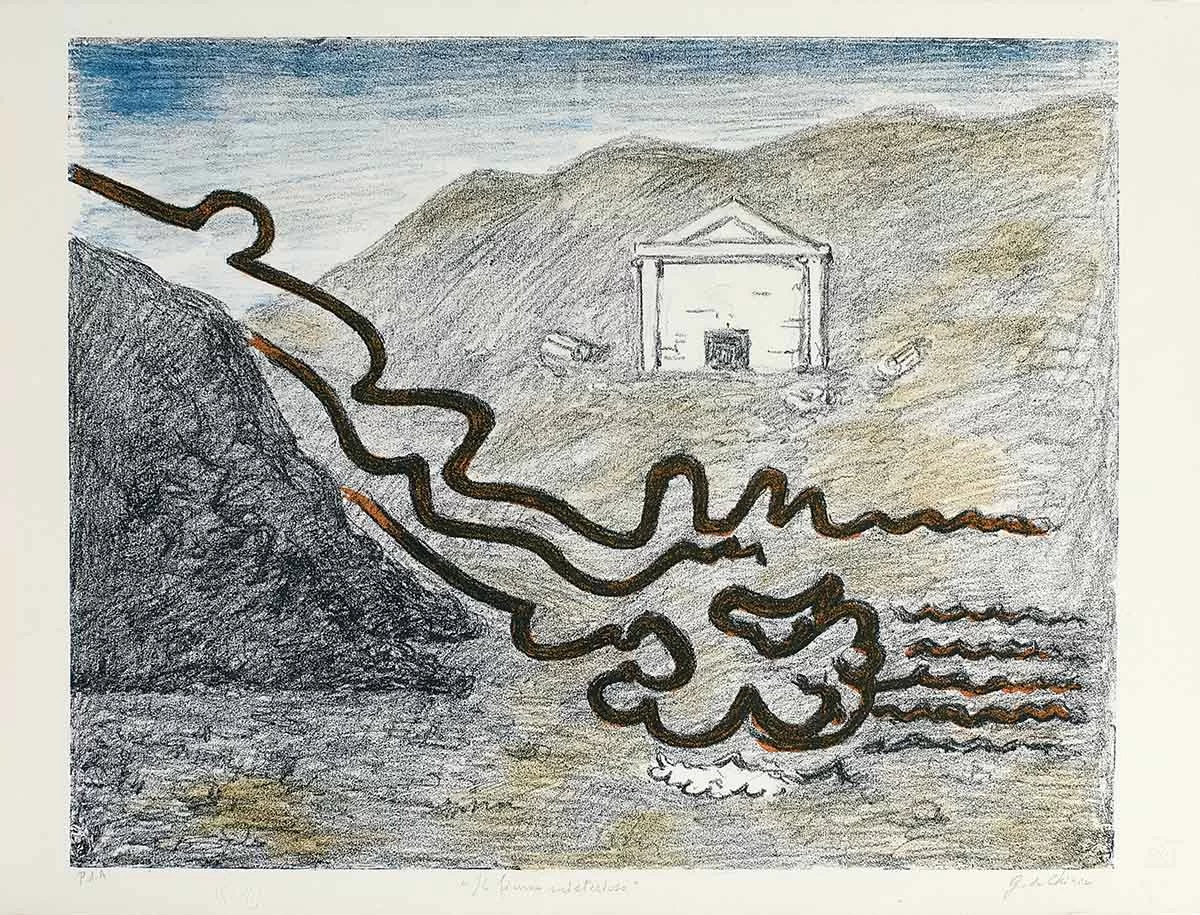 De Chirico crea un’opera in cui emerge un clima di nostalgico mistero. Negli anni ’20, l’artista utilizza una fattura più classica e delle tecniche riprese dagli antichi maestri (velature, tempere). Tra il 1924 ed il 1929 vive nuovamente a Parigi dove raggiunge il movimento del Novecento in netta opposizione al modernismo. Viene criticato per questa sua scelta e molte delle sue relazioni artistiche gli girano le spalle.