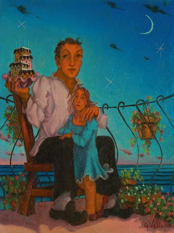 Barese del 1967, autodidatta, espone i suoi primi lavori a soli 18 anni in numerose rassegne nazionali. Nascono nel 1992 i sognatori, protagonisti delle sue opere e della sua inconfondibile fantasia. Usa colori primari per ottenere contrasti forti, come forte è il suo simbolismo, antico di millenni eppure legato alla propria infanzia. La scatola magica ricorda una vecchia scatola di legno in cui suo nonno conservava gli attrezzi con cui era capace di riparare ogni cosa.