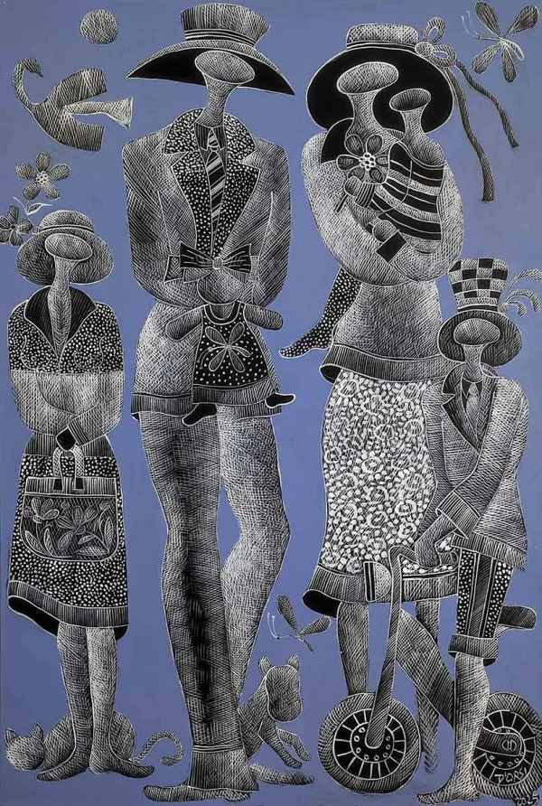 Poliedrico ed estroverso, il pittore varia nella scelta dei soggetti. Le figure che abitano i suoi quadri sembrano manichini, riportando così alla memoria l’insegnamento di De Chirico rivisitato dall’estro dell’artista. I paesaggi si suddividono in ordinati moduli geometrici, appartenenti a un mondo ideale, liberi dalla presenza umana, mentre gli alberi, anch’essi protagonisti di alcune opere di Dorsi, sono costruiti seguendo un astratto impianto segnico, capace di suscitare profonde vibrazioni nello spirito.