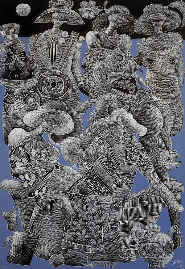 Poliedrico ed estroverso, il pittore varia nella scelta dei soggetti. Le figure che abitano i suoi quadri sembrano manichini, riportando così alla memoria l’insegnamento di De Chirico rivisitato dall’estro dell’artista. I paesaggi si suddividono in ordinati moduli geometrici, appartenenti a un mondo ideale, liberi dalla presenza umana, mentre gli alberi, anch’essi protagonisti di alcune opere di Dorsi, sono costruiti seguendo un astratto impianto segnico, capace di suscitare profonde vibrazioni nello spirito.
