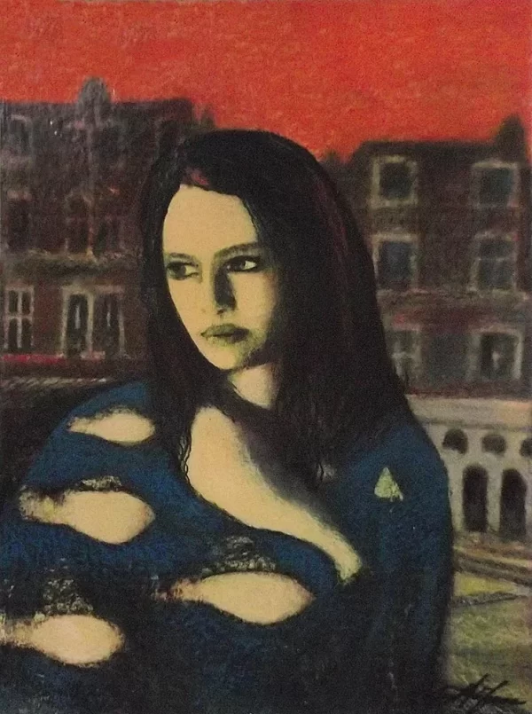 tecnica: Acrilico e pastelli a olio, con interventi materici, applicati su base di polipropilene