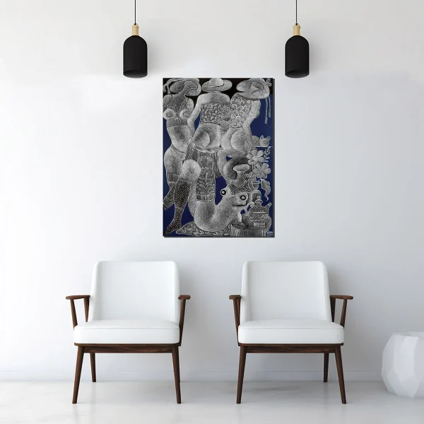 Poliedrico ed estroverso, il pittore varia nella scelta dei soggetti. Le figure che abitano i suoi quadri sembrano manichini, riportando così alla memoria l’insegnamento di De Chirico rivisitato dall’estro dell’artista. I paesaggi si suddividono in ordinati moduli geometrici, appartenenti a un mondo ideale, liberi dalla presenza umana, mentre gli alberi, anch’essi protagonisti di alcune opere di Dorsi, sono costruiti seguendo un astratto impianto segnico, capace di suscitare profonde vibrazioni nello spirito.
