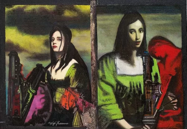 tecnica: Acrilico e pastelli a olio, con interventi materici, applicati su base di polipropilene
