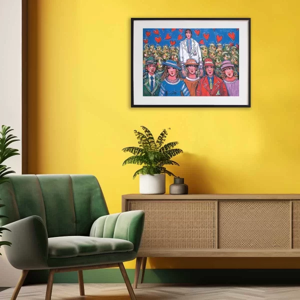 I dolori che affronta nella sua vita vengono trasformati in uno stato di grazia. Le sue opere sono caratterizzate dalla gioia del colore, abbracci, musica e sogno.