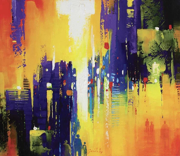 Non c’è mai traccia di presenza umana nelle opere di Guadalupi, non perché l’uomo non sia parte fondante di questa rappresentazione, ma perché l’uomo è al di fuori, è colui che guarda. Non partecipa, osserva. Le sue New York. Chicago, Manhattan, non sono ritratti perfetti, molti panorami non corrispondono alla realtà dei luoghi, sono evocazioni.