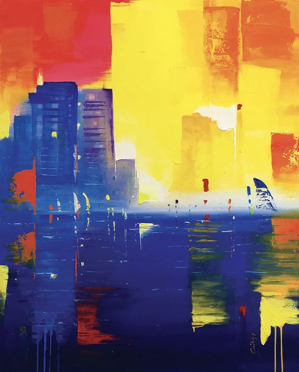 Non c’è mai traccia di presenza umana nelle opere di Guadalupi, non perché l’uomo non sia parte fondante di questa rappresentazione, ma perché l’uomo è al di fuori, è colui che guarda. Non partecipa, osserva. Le sue New York. Chicago, Manhattan, non sono ritratti perfetti, molti panorami non corrispondono alla realtà dei luoghi, sono evocazioni.